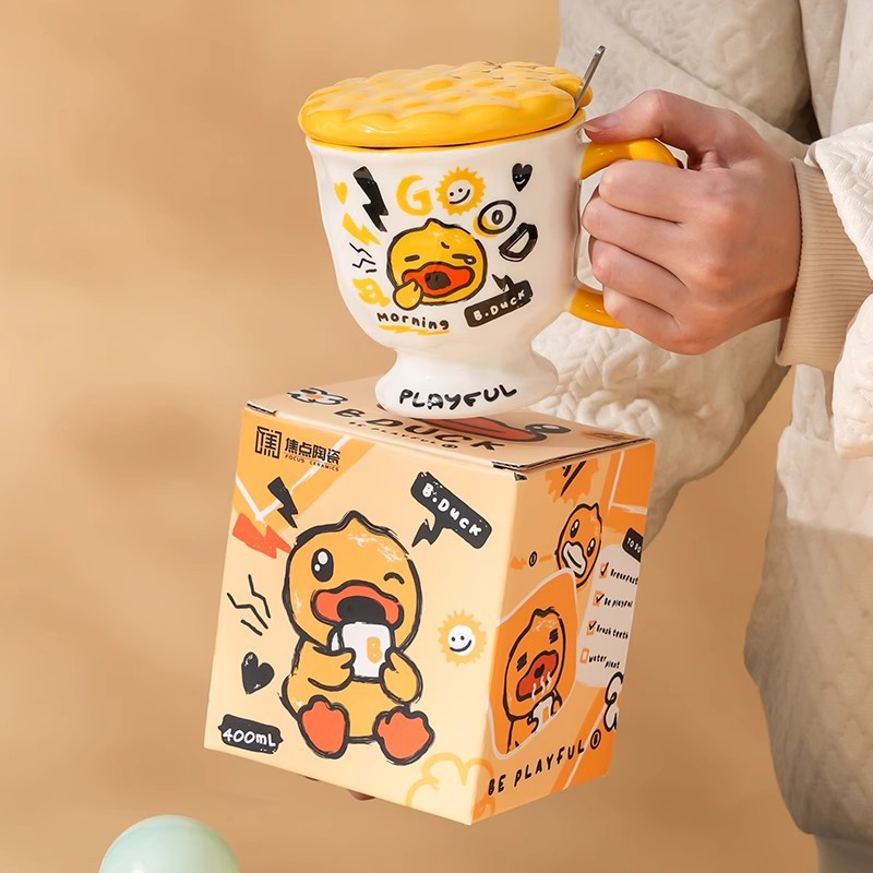小黄鴨陶磁器マグカップ蓋付きオフィスコーヒーカップ家庭用アニメかわいい高颜値朝食ミルクカップ