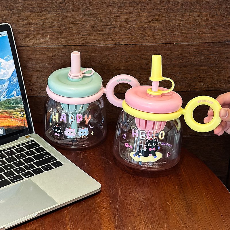 大容量ストローカップ大人泡花カップかわいい高颜値児童学生ミルクカップオフィスコップ