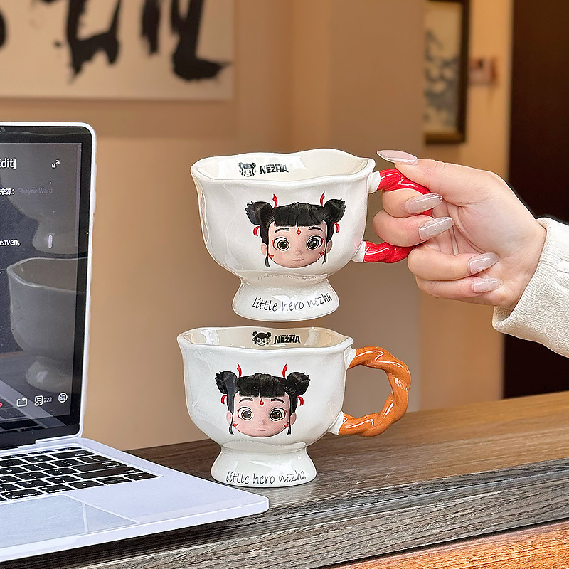 Nezha セラミックゴブレット漫画家庭用ドリンクカップ男性と女性の学生朝食カップオフィスミルクコーヒーカップ