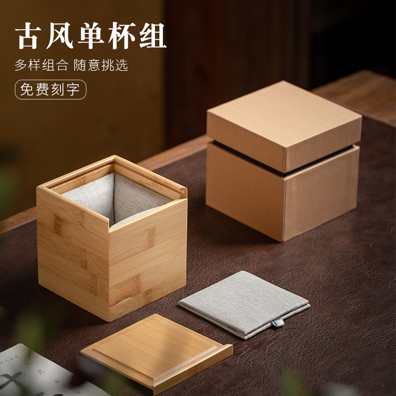 工場の卸売りは杯の錦箱の茶器の正方形の牛革の紙箱の湯飲みの包装箱の贈り物の箱を建てて字を刻むことができます。
