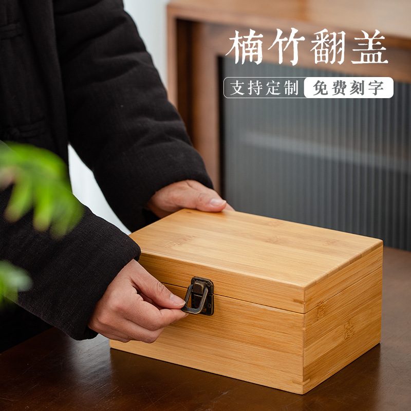 卸売り竹木は字を彫ることができる収納ケースの茶器1つのポット2杯の仕切りを組み合わせてギフトボックスを収蔵することができる