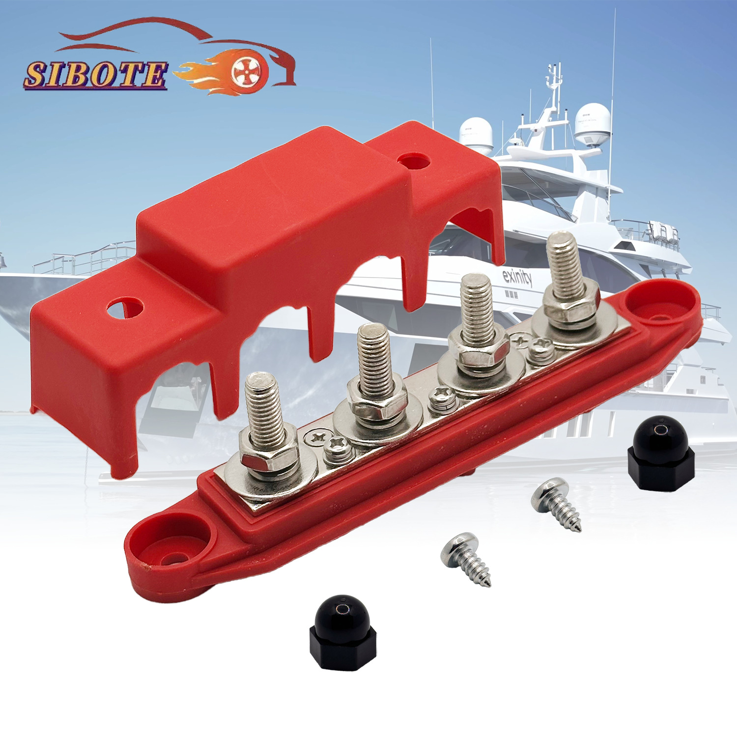 キャンピングヨット合流列M8M10大電流配線スタッド赤黒色4スタッド配電ブロック合流線列