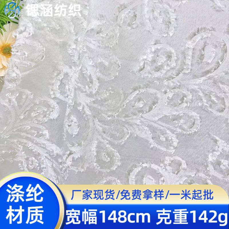 144 グラム春と夏のポリエステルフェザーフラワー菱形織りロングヘアシフォンカットフラワージャカード生地ファッションドレス生地
