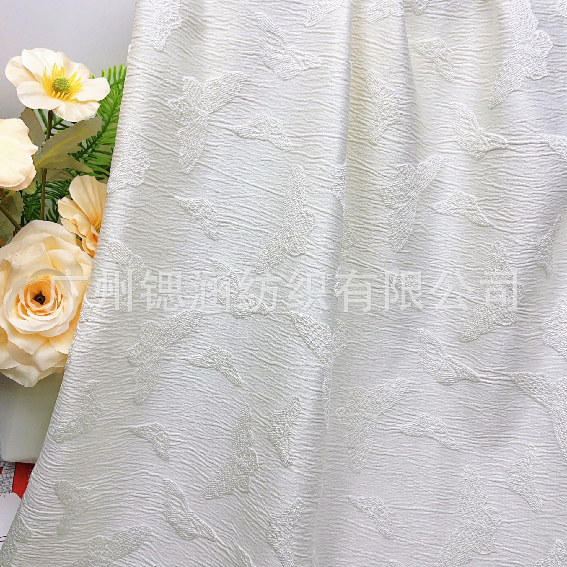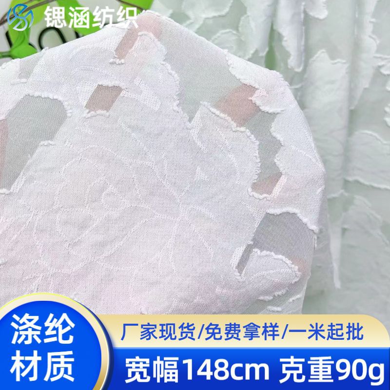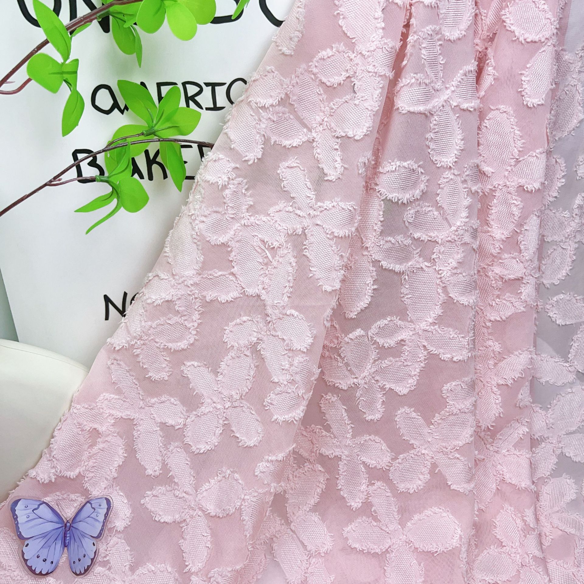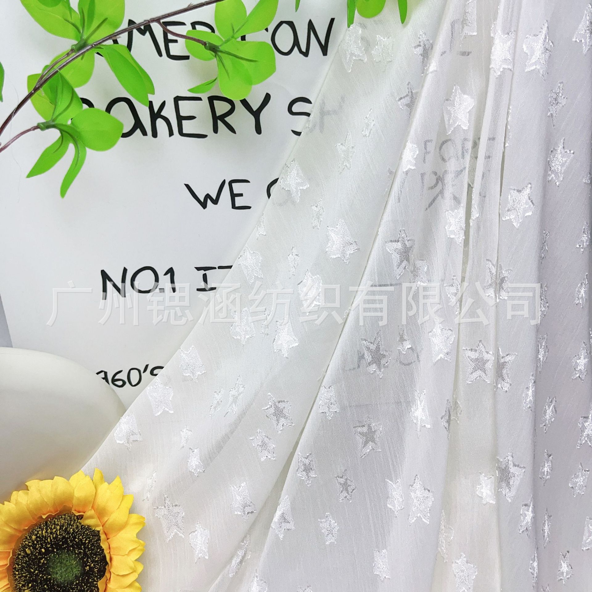 新しいシフォンしわ五芒星カットフラワージャカード生地春と夏のポリエステルシャツドレス衣類子供服生地