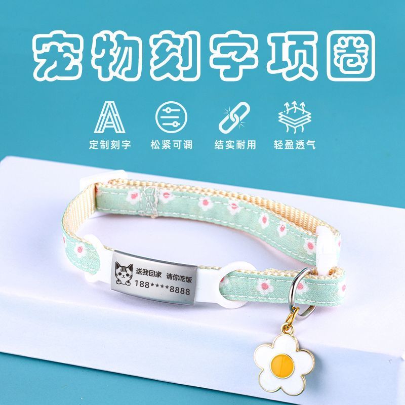 ペットの首輪に刻印された紛失防止IDネームタグ、調節可能な安全バックル、猫と小型犬のリード