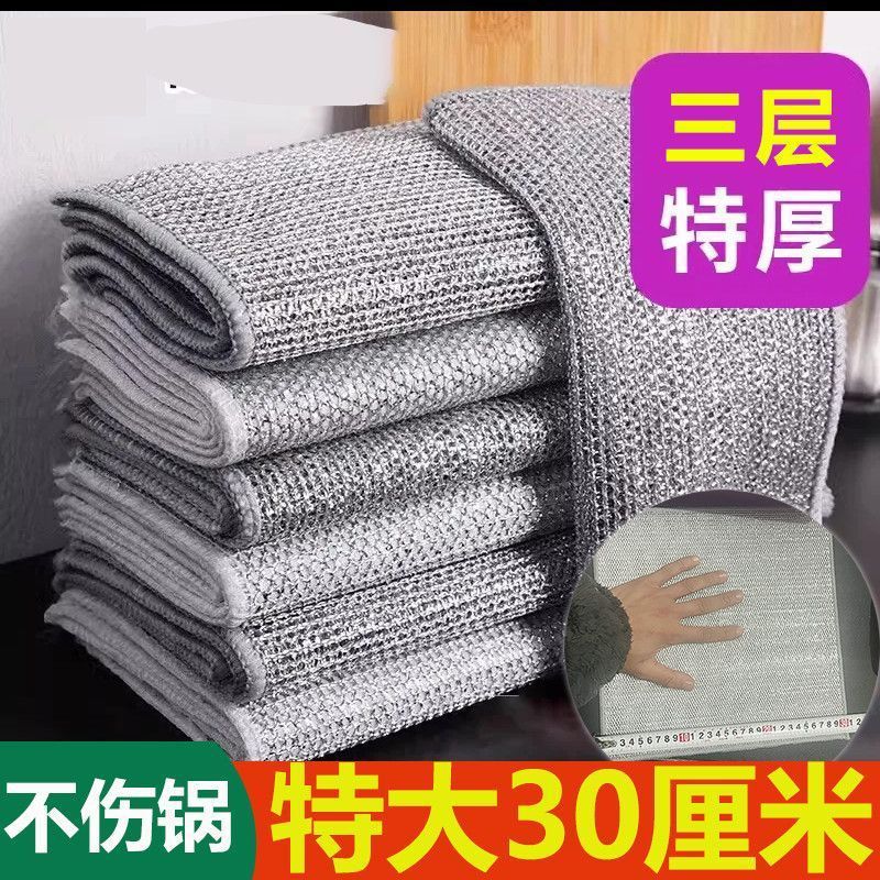 30x30 三層金属ワイヤーラグ、厚みのある両面メッシュポットブラシ、銀線鋼球、シンク収納ラック