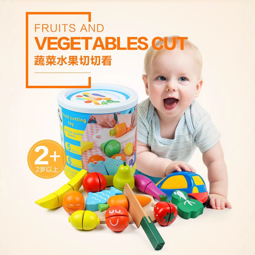 木製のバケツは、インタラクティブなおもちゃの子供の启智キッチンの木製のおもちゃの果物野菜を見てみましょう