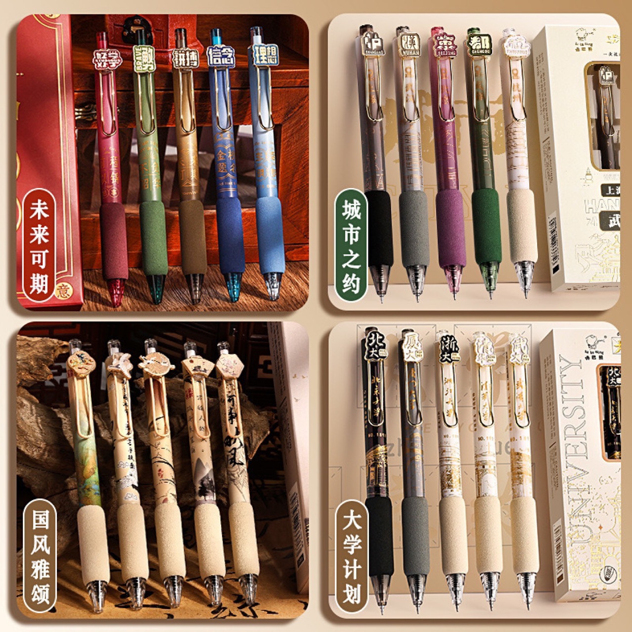 カバ熊大学の約中性筆高颜値六大名門校のシール金ブラシ問題筆0.5mm黒押し筆