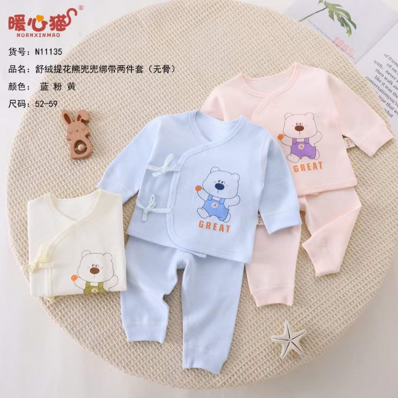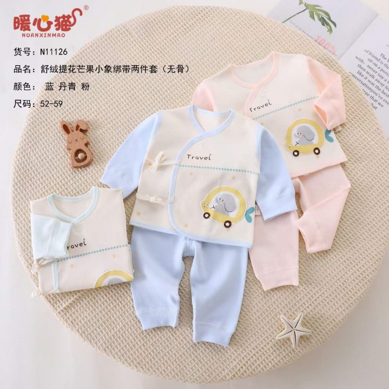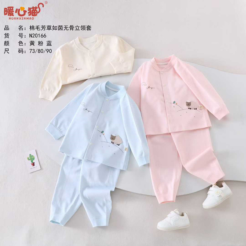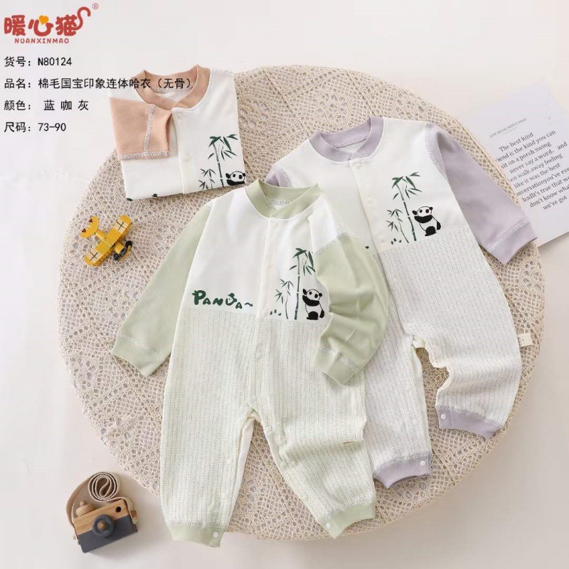 春と秋の新型乳幼児シュール無骨立襟セット暖かい猫ポケット熊赤ちゃんセット73-80-90ヤード