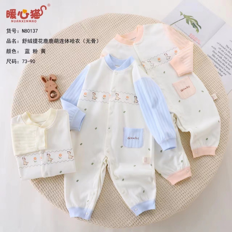 新商品の赤ちゃん春秋舒絨無骨連体服鹿鹿萌赤ちゃんジャカードは暖かい猫73-90に登ります。