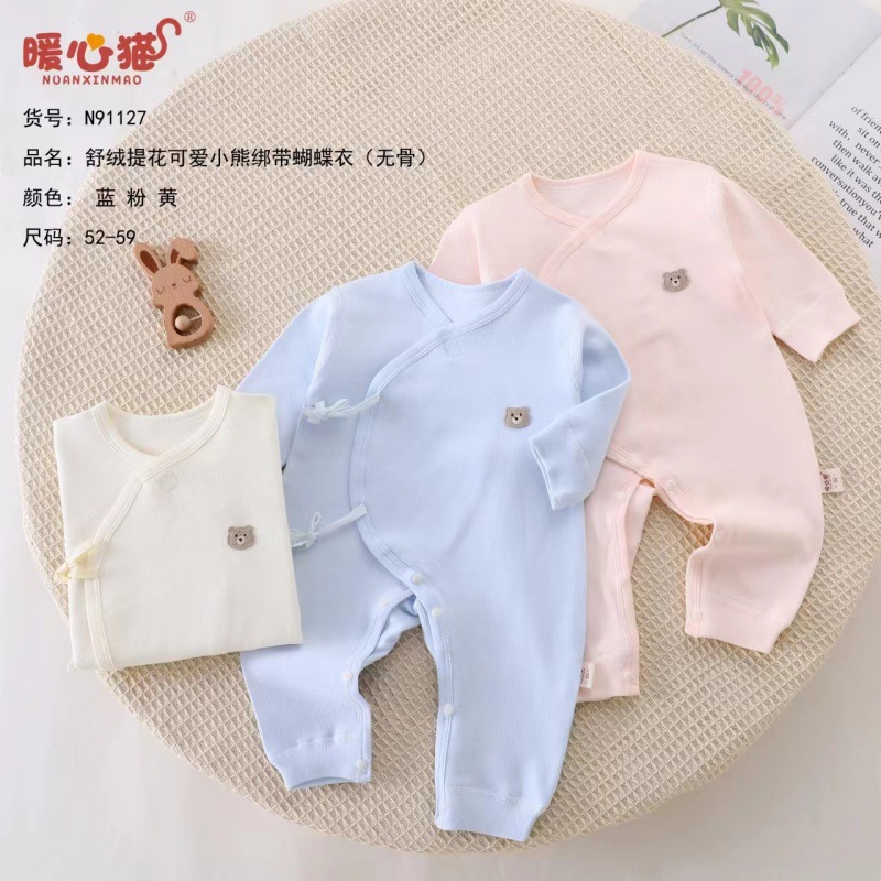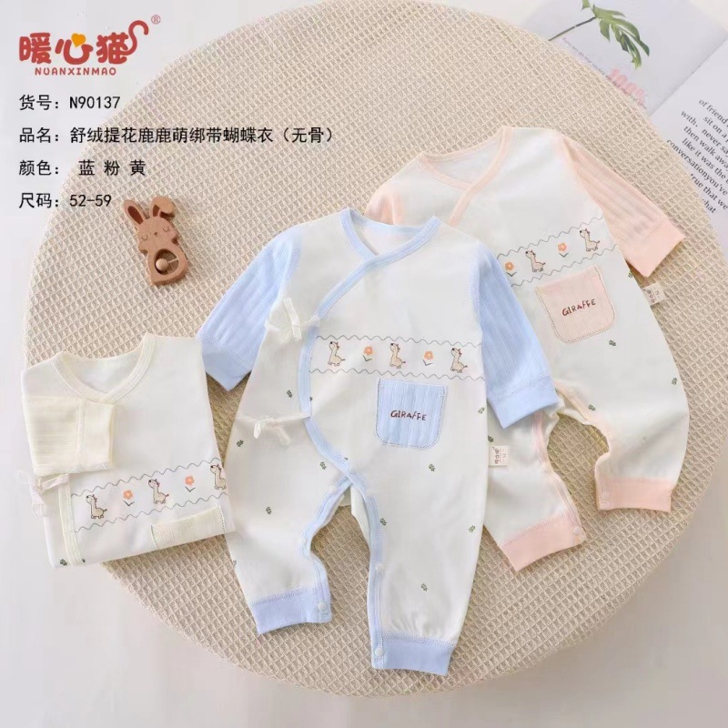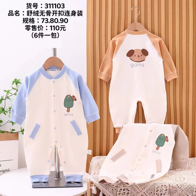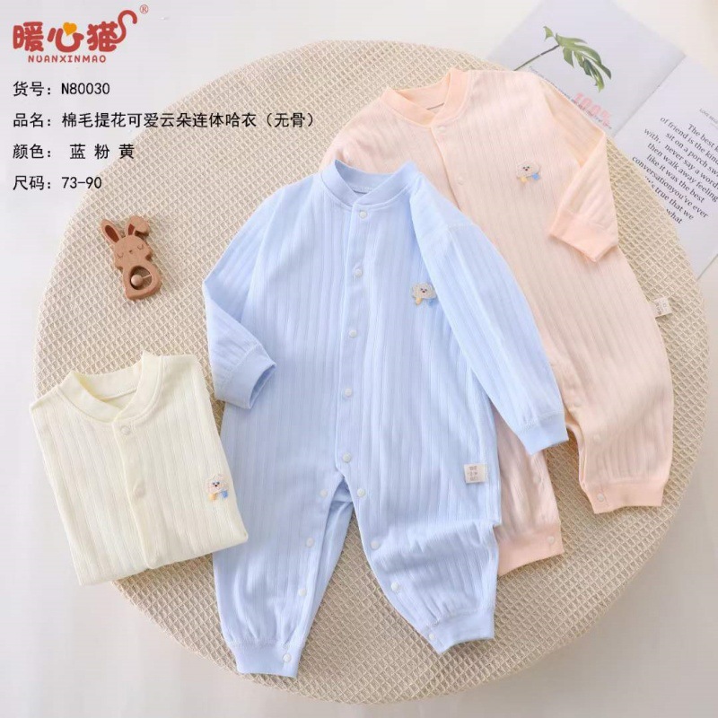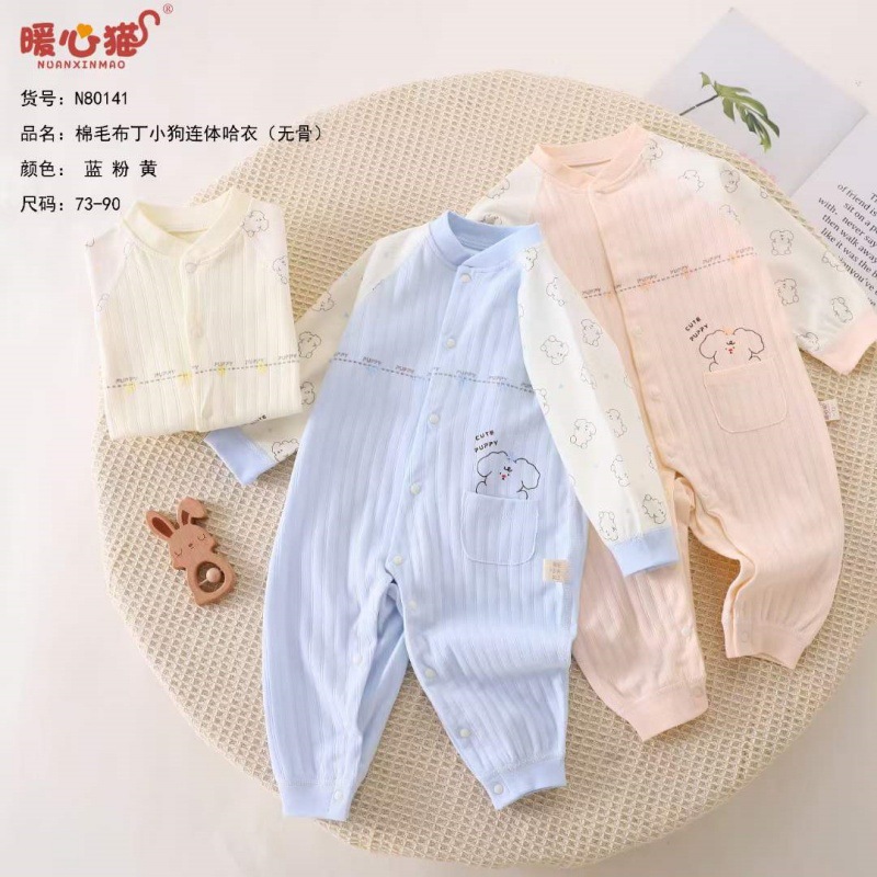 綿舒宝秋冬新型赤ちゃん保温無骨連体服赤ちゃん開ボタン服66-90ヤード