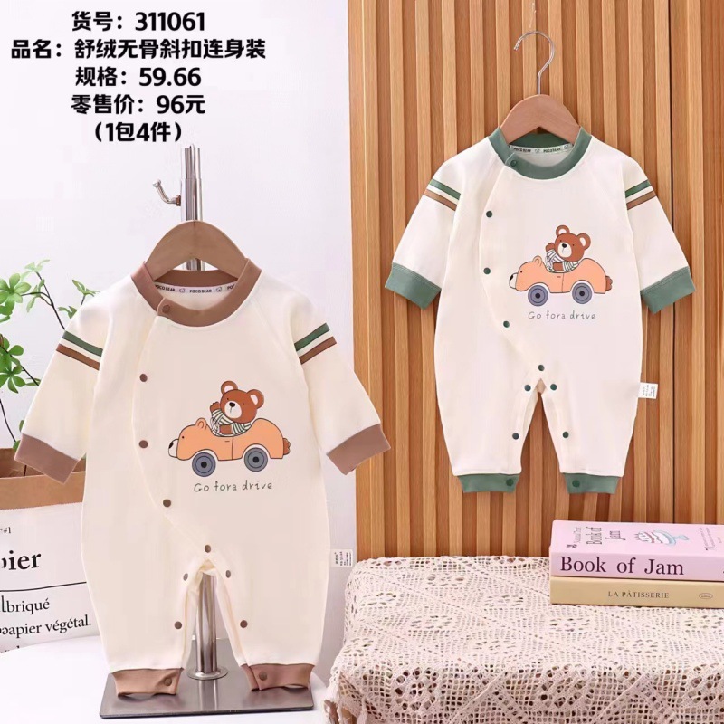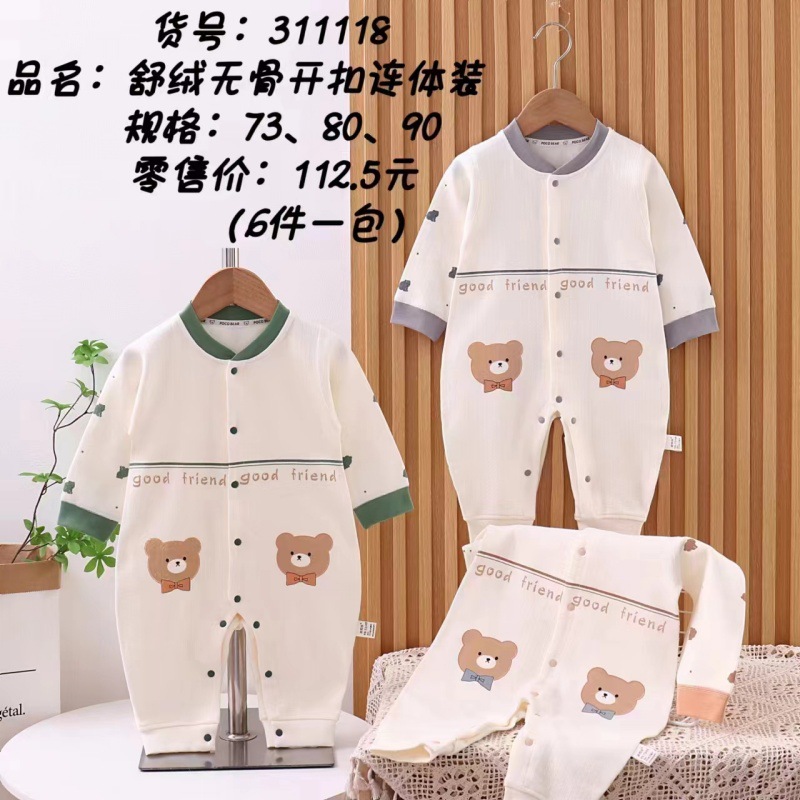 波柯熊秋の赤ちゃんの新型舒毛無骨開ボタン連体服の赤ちゃんは服を着て73-80-90ヤードに登ります。