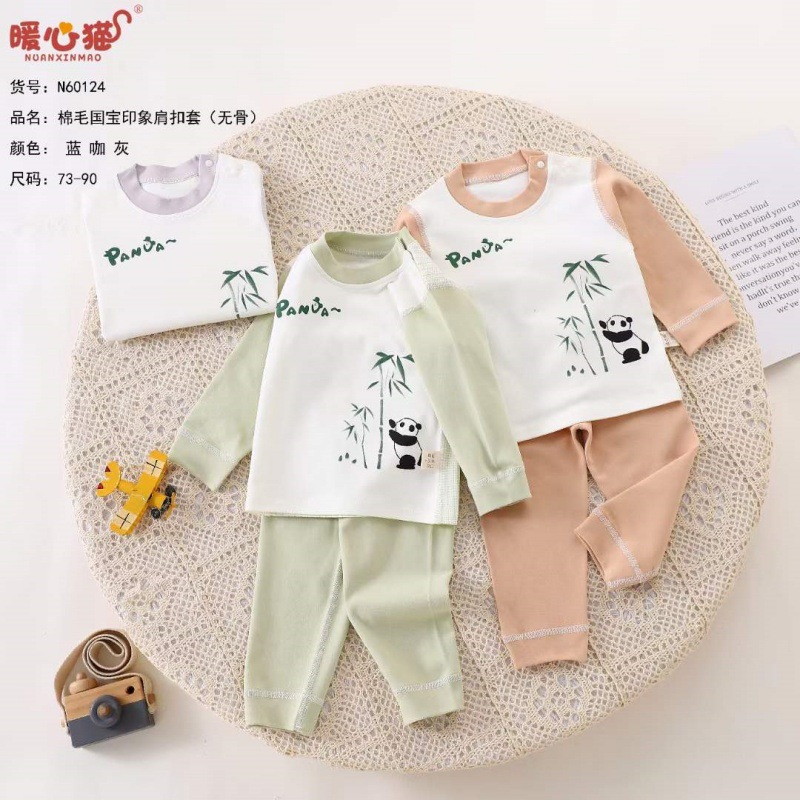 秋冬子供純綿下着セット子供肩ボタン中国風セット暖かい猫の赤ちゃんカバー73-80-90サイズ