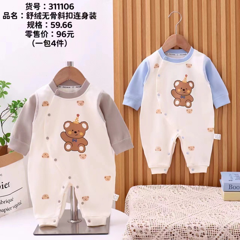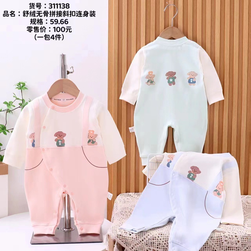 波柯熊秋の新型赤ちゃんのシュールな無骨の服の色合わせの斜め掛けの赤ちゃんの連体の服は59-66ヤード登ります。