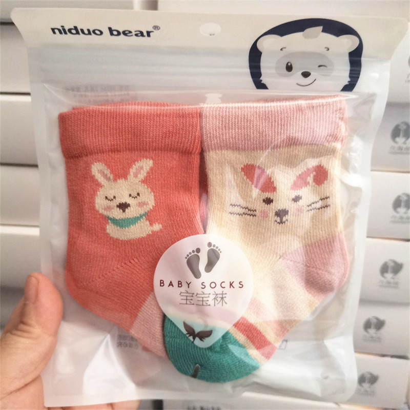 ニド熊秋冬新作赤ちゃん精練綿中筒靴下骨なし縫合赤ちゃん靴下漫画綿靴下0-12月