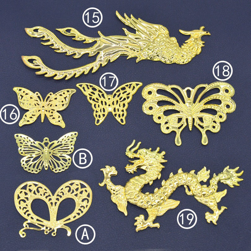 DIYウェディング金属花片古風花片混金鳳凰花片龍鳳蝶小花片材料
