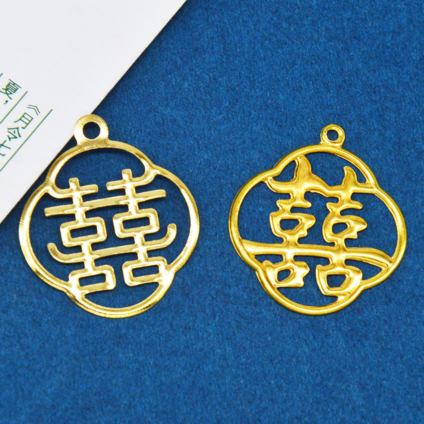 アクセサリーアクセサリー結婚祝い福喜金色花片ストラップ22mm小喜字ストラップ双喜小吊り片