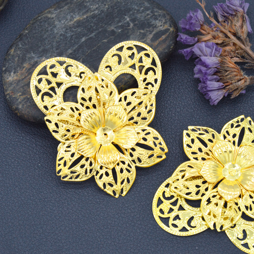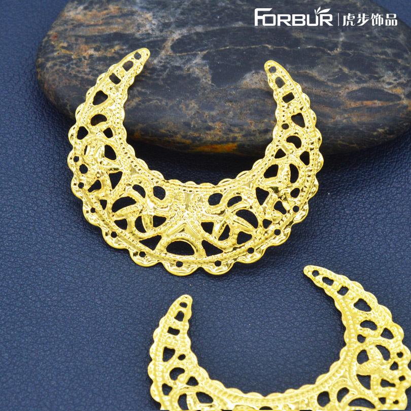 鉄質のかんざしの底の花の切れの復古の牛の角のアクセサリの金の切れの42mmの透かし彫りの円環の月の花の切れ