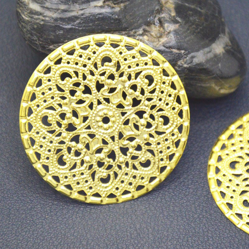 金色レトロ花片材料円形透かし彫り花片鉄金メッキ40mm龍紋円花片