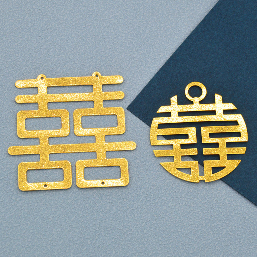 お祝いの結婚祝いの金色の花片の材料の閃砂の砂の艶消しの円喜の双喜の花片の鉄と喜びのペンダント