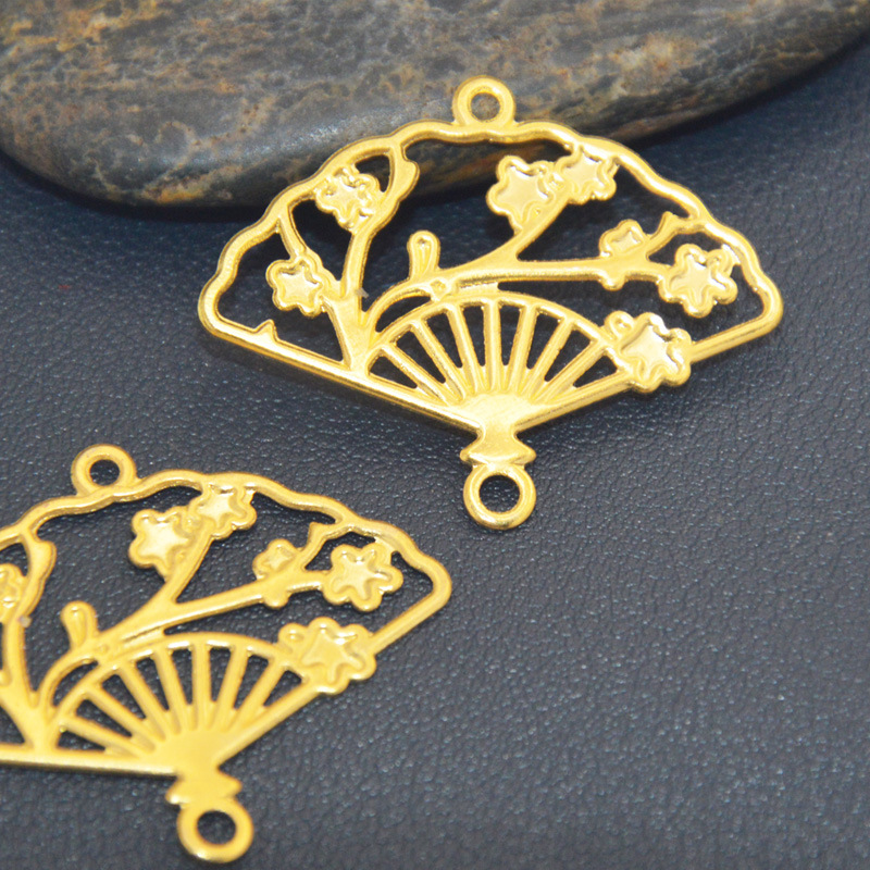 Diy古風アクセサリー材料透かし彫り扇子花片梅花扇形鉄花片ダブルペンダント