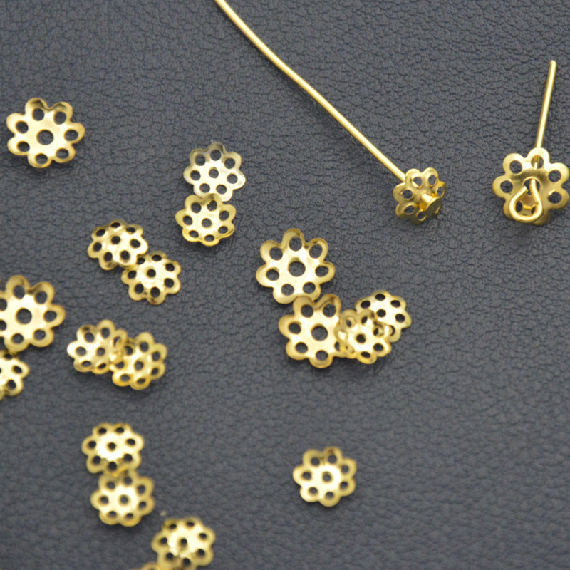 Diyアクセサリー材料鉄透かし彫り隔珠底花托串針珠托珠帽7/9mm光沢面花托