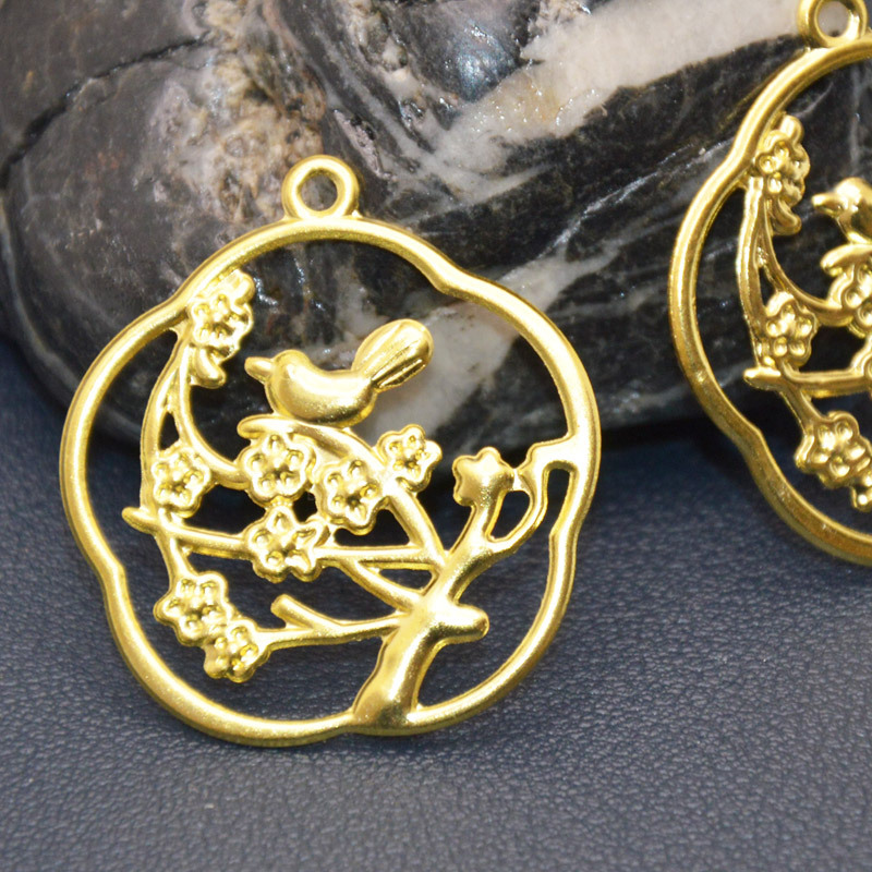 Diy宮廷頭飾りヘアピン材料30mm枝小鳥花片国画スタイル金花片ペンダント