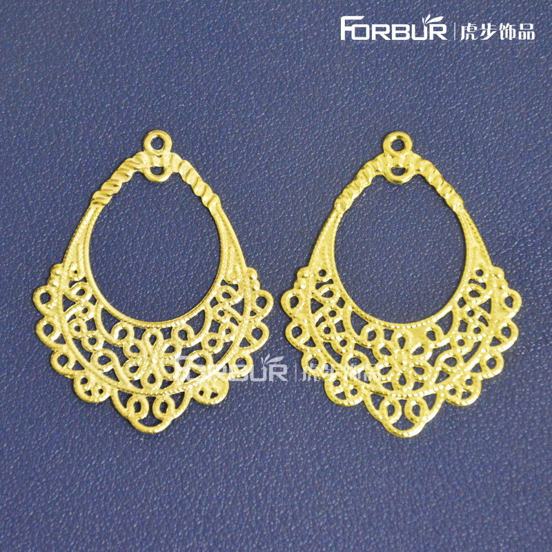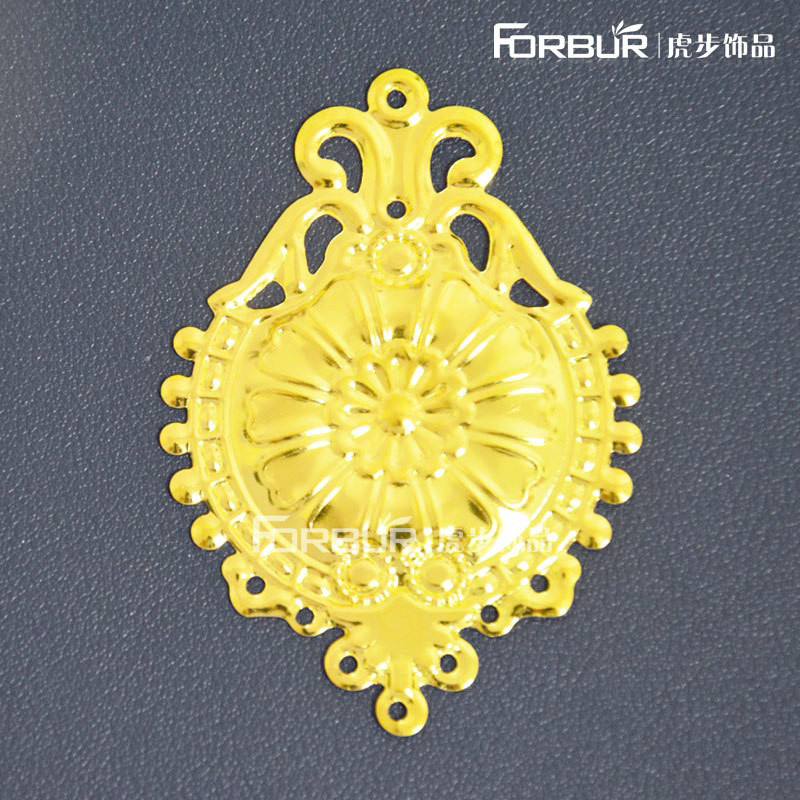 透かし彫りのイヤリングの部品の時代劇の鳳冠の部品の水滴のつりの切れの金メッキの数珠の鉄の花の42mm