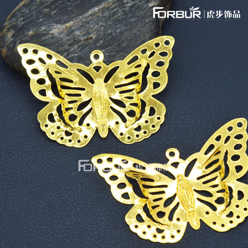 鉄皮透かし彫り蝶花片金色メッキ50*35mm内切蝶ペンダント花嫁頭飾り鉄片