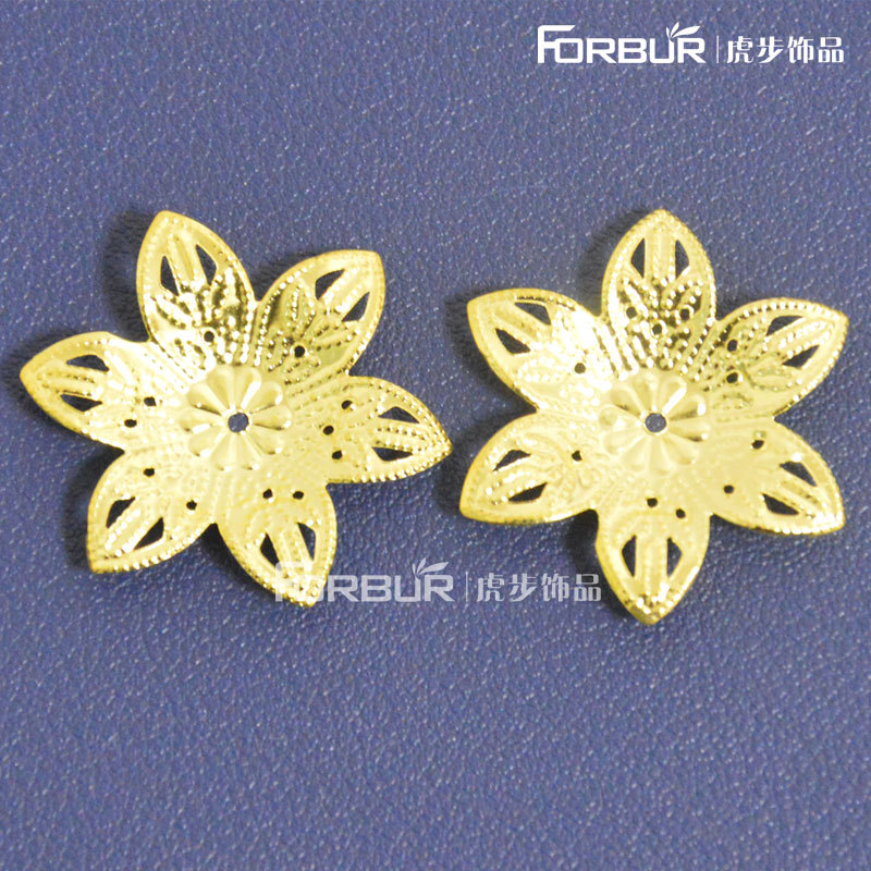 Diy透かし彫り金色花びら32mm六葉金属鉄花片六角花頭飾り花片材料