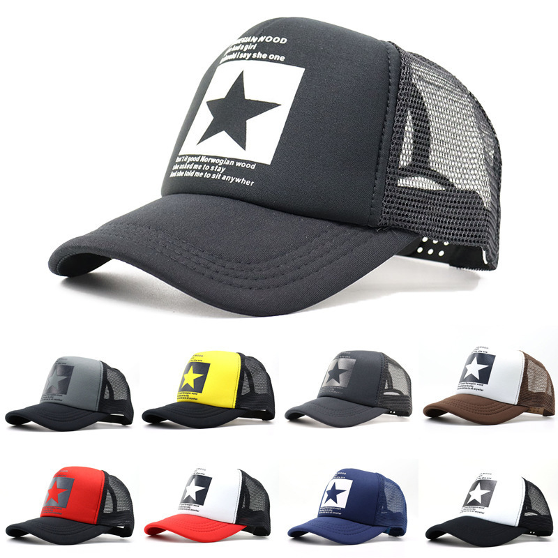 クロスボーダー欧米五芒星アルファベットプリントスポンジ野球帽子トラック運転手ネット帽子夏帯網鴨舌帽