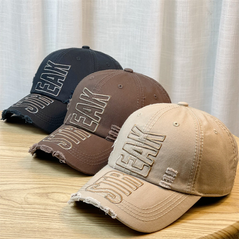 韓国版insレトロ破れ穴ソフトトップ鴨舌帽女性春秋ファッション個性シンプル街頭日焼け止め野球帽ブーム