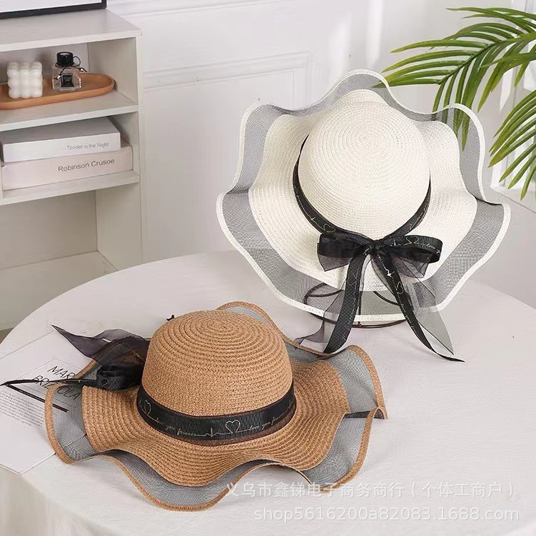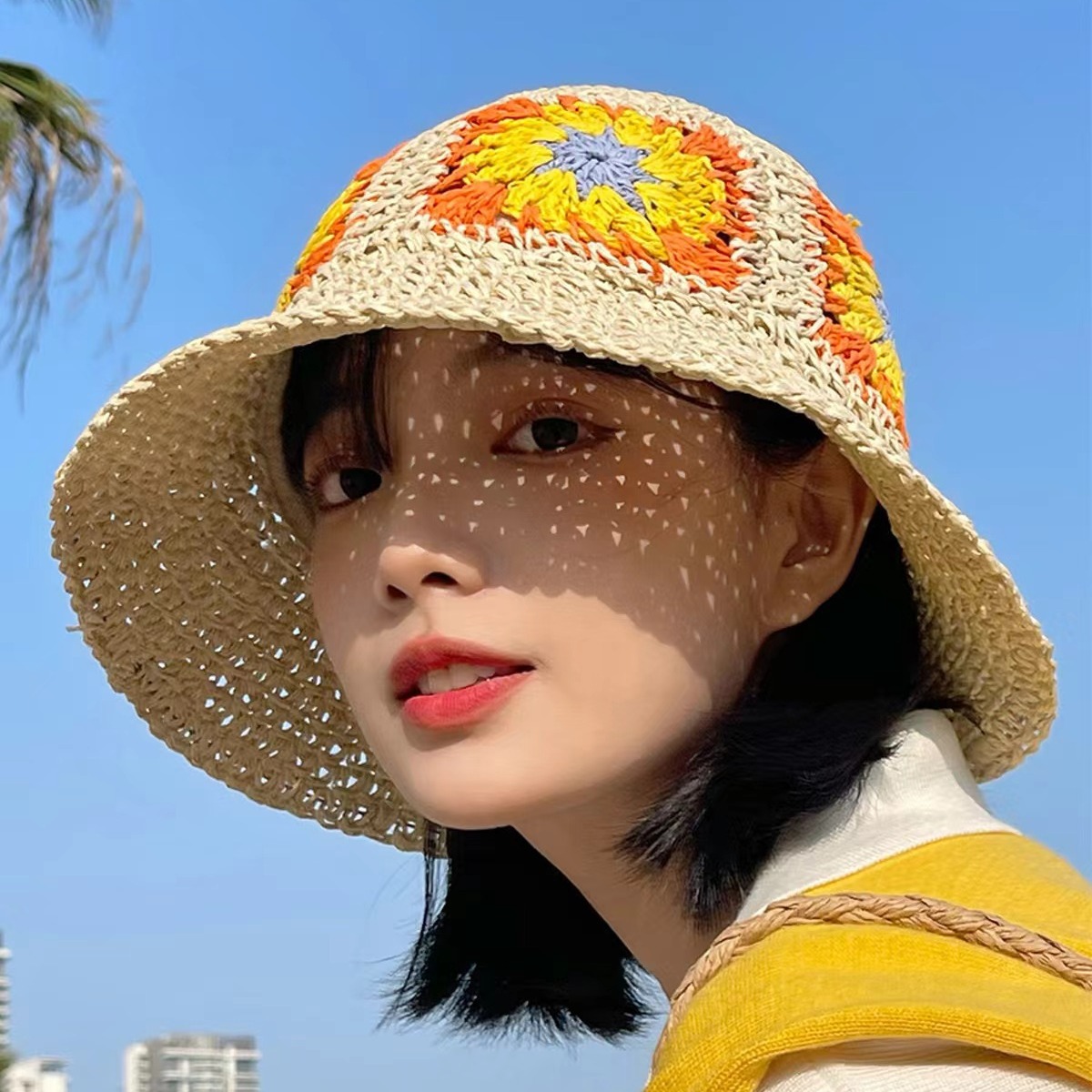 2024新型麦わら帽子女夏日よけ帽子海辺の砂浜折り畳み漁師帽子旅行日よけ帽子
