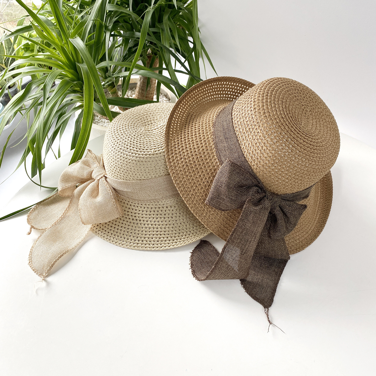 麦わら帽子の女性の夏のビーチ帽子の新型の日よけ帽子のフランスの顔を遮る日よけ帽子の2024年の日よけ帽子の海辺は写真を撮ります。