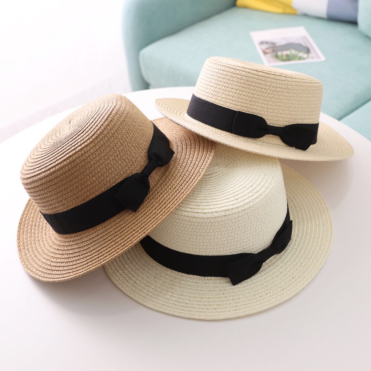 春夏の韓国版の麦わら帽子の英倫の復古の欧米の蝶結びの平頂の小さい礼帽の女性の日よけの日焼け止めのビーチ帽の子供
