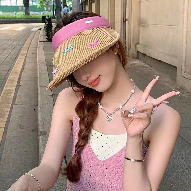 夏ins日よけ黒ゴム帽子韓国版空頂日焼け止め帽子ネット赤大軒女麦わら帽子ファッションカチューシャ太陽帽子