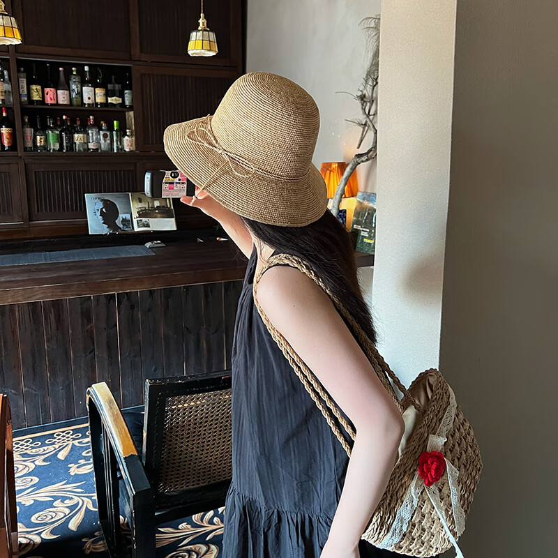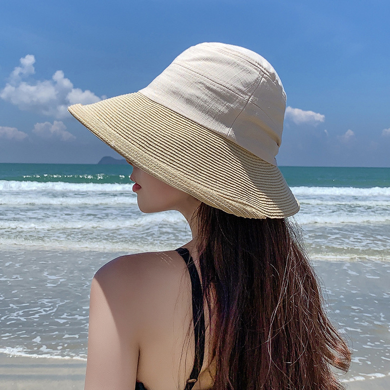 つばの大きい麦わら帽子の女性の夏の通気性の韓国版は顔の小さいバケツの帽子を現します。