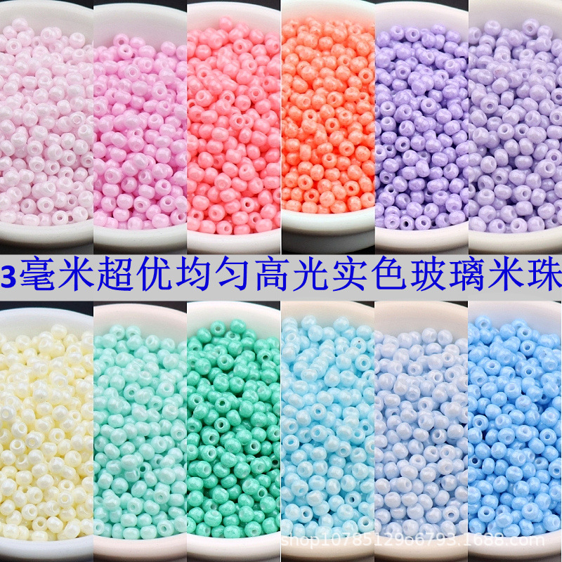 超優3ミリハイライト実色ガラス米珠8/0珠光diy手作りネット赤宝飾品ネックレスブレスレットビーズ