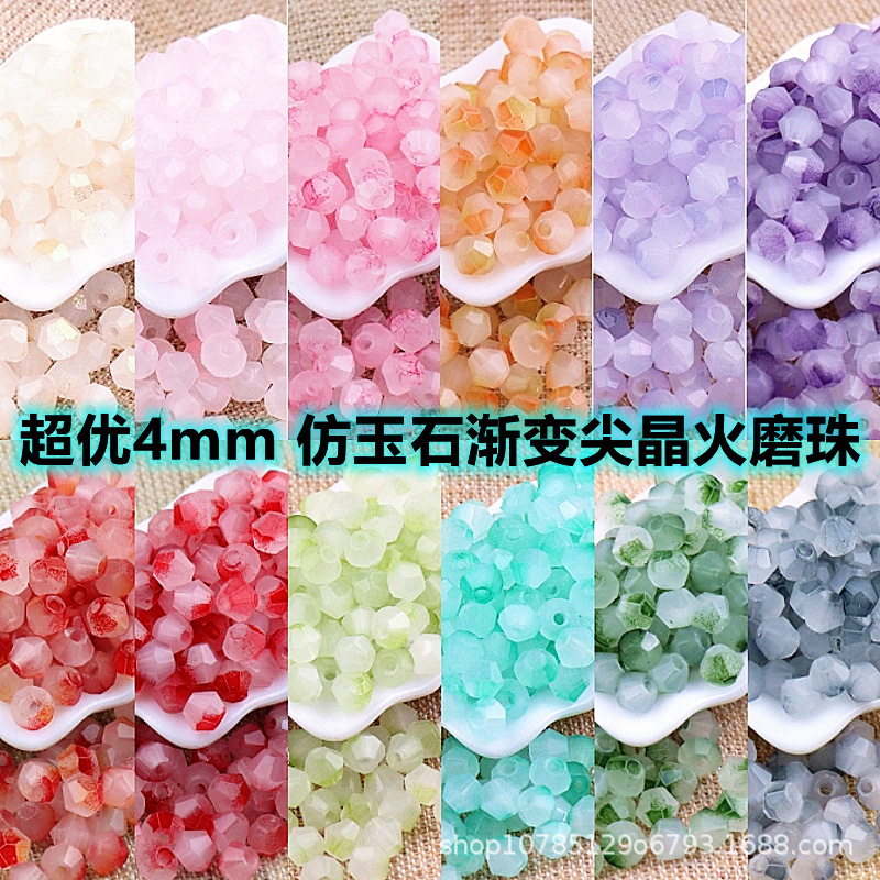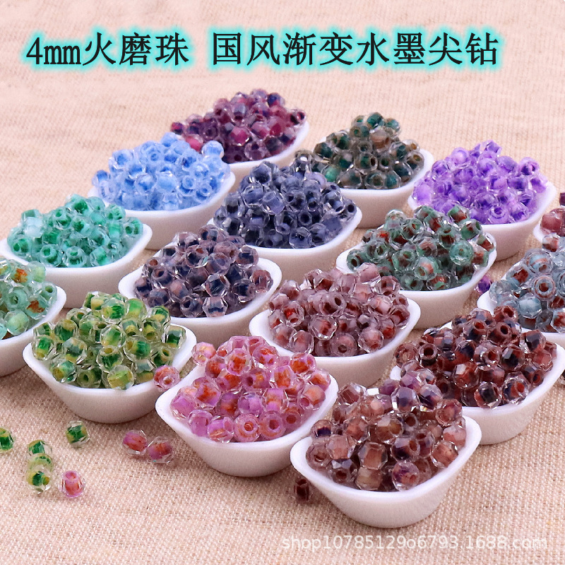 4mm火魔珠菱形国風水墨ぼかしカット面ガラス水晶散珠diy手作りビーズ隔珠ブレスレット