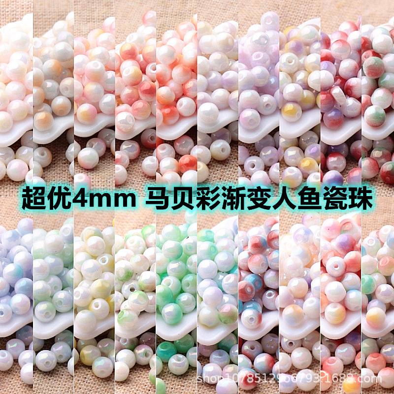 超優4mm馬貝彩グラデーション2色人魚磁器珠色落ちしないブレスレットネックレスアクセサリーDIY部品散珠