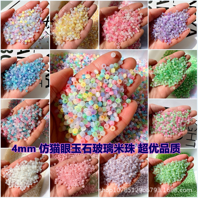 超優4mm猫眼玉氷種ガラス米珠diy手作りビーズブレスレットイヤリング編みアクセサリー材料