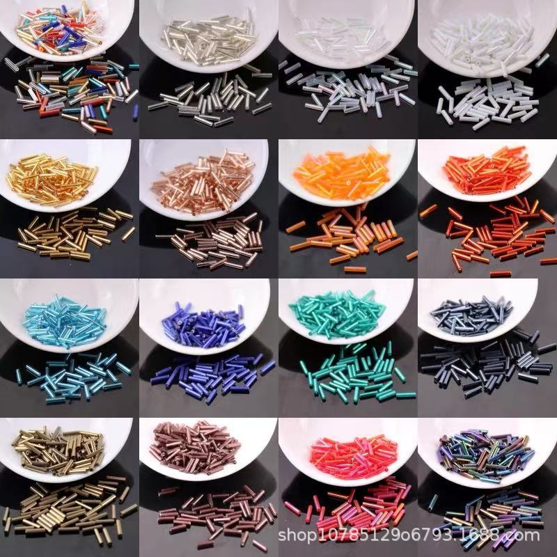 2x9mmガラス管珠手作りdiy部品散珠手縫服装アクセサリーバッグ長管流蘇ビーズ補助材料