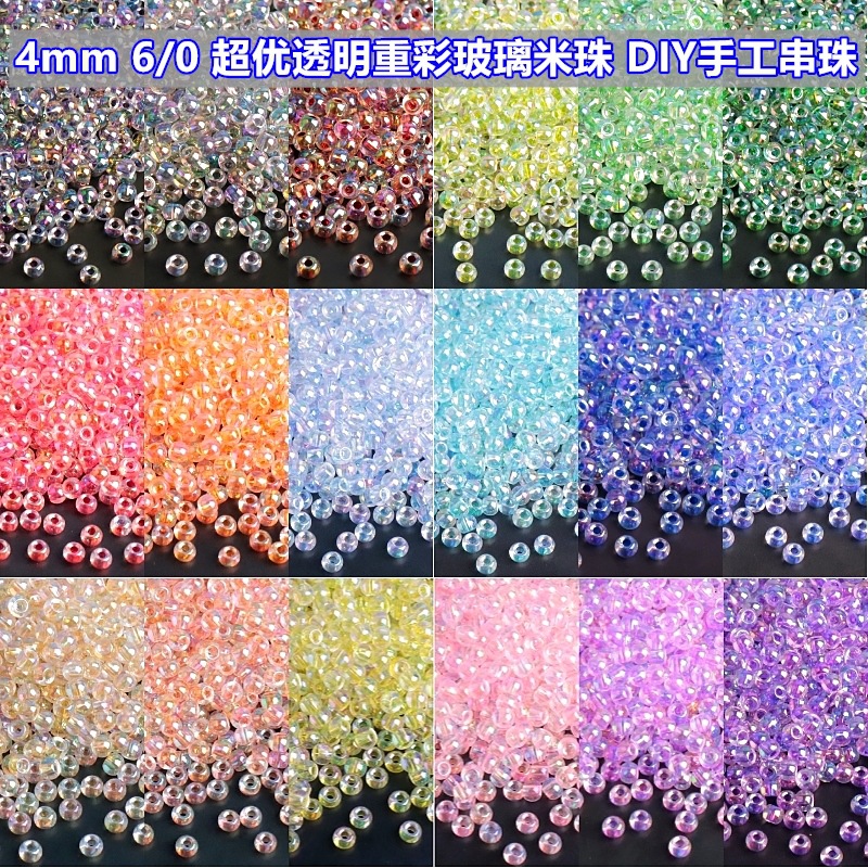 4mm強化超優幻彩透明ガラス米珠6/0超自慢サイズ均一DIYブレスレットアクセサリービーズ