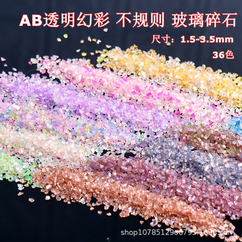 ネット赤幻彩不規則ガラス砂利韓系超フラッシュ水晶鉱石diyアクセサリー充填ネイル材料