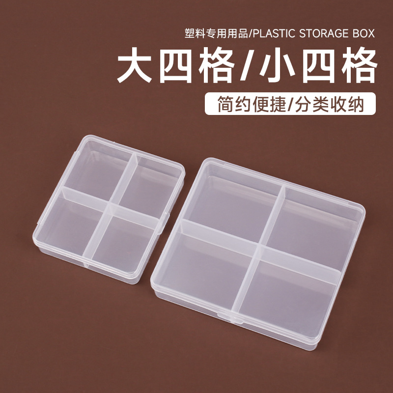 4格子のプラスチックの箱の美甲のアクセサリーのピアスの分注の箱の文房具の部品のクリップの多い格子の収納の箱