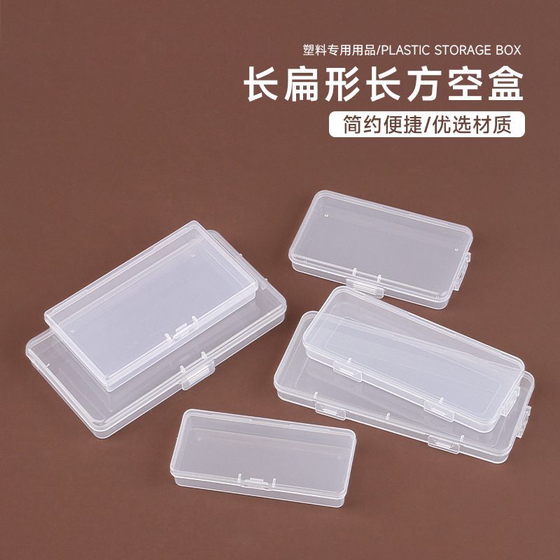 透明なppの長方形のプラスチックの平たい箱のイヤホンの線のデータ線の携帯用の収納箱の眉の刀の眉のはさみの包装の箱