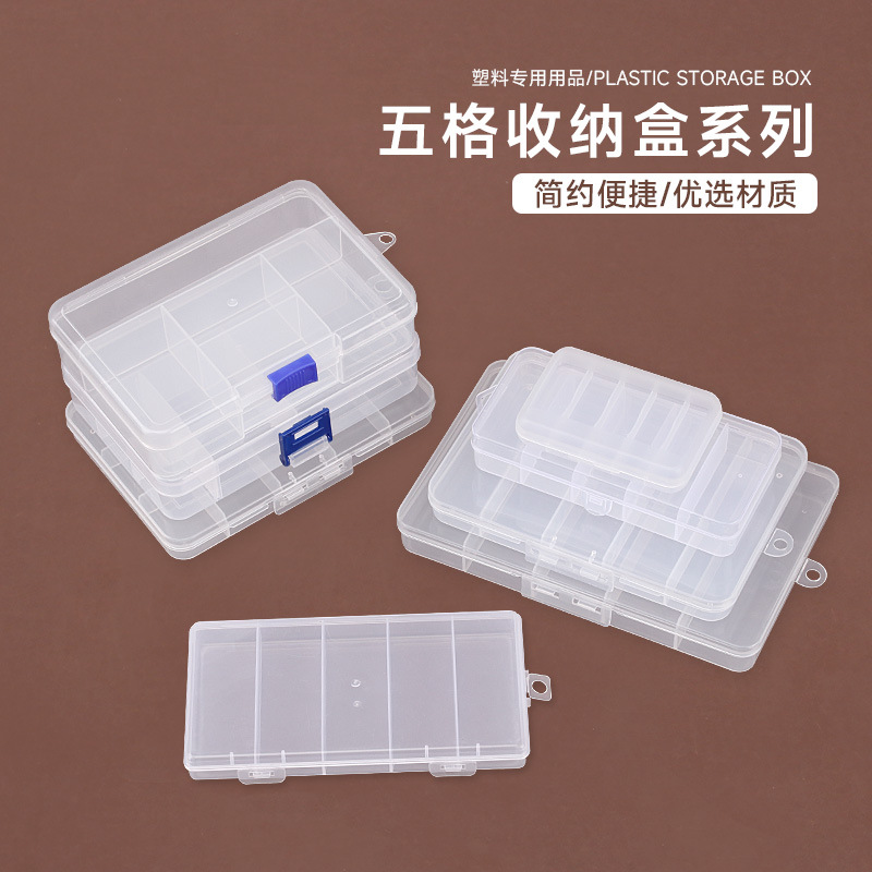 5 コンパートメントプラスチックデスクトップ収納ボックス 5 コンパートメント透明 PP ボタン漁具アクセサリージュエリー化粧品包装ボックス Amazon