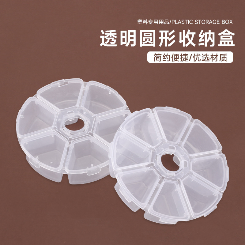 ラウンド 6 グリッド透明プラスチックボックス蓋付き分離ボックス文具おもちゃジュエリー整理ボックスジュエリービーズ包装ボックス