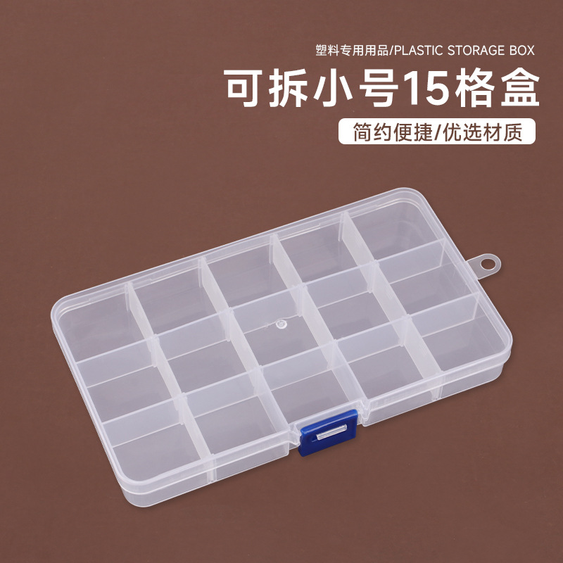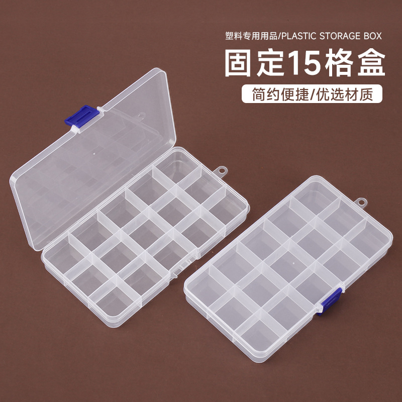固定15グリッド長方形透明プラスチック収納ボックスppボックス文房具部品ボックス金物ツールジュエリー包装ボックス