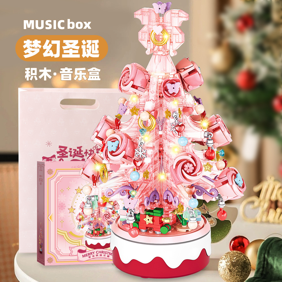 楽楽兄弟クリスマスツリーのオルゴールの小さい粒子は積み木の子供のおもちゃのクリスマスの置物の祝日の贈り物をつづり合わせます。